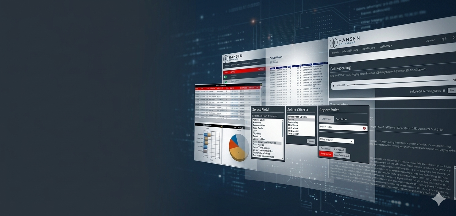 Hansen Software delivers advanced call reporting, secure call recording, and one-click transcription — built to work with any phone system, from legacy PBX to modern cloud platforms.